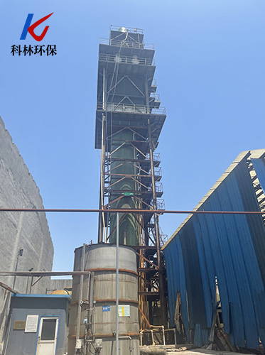 旋转喷雾烟气脱硫工艺一般用生石灰(主要成分是Ca0)作吸收剂。生石灰经熟化变成具有较好反应能力的主要成分是Ca(0H)2的熟石灰浆液。熟石灰浆液经装在吸收塔顶部的高达15000~20000r/min的高速旋转雾化器喷射成均匀的雾滴,其雾粒直径可小于100μm。这些具有很大表面积的分散微粒,一经与烟气接触,便发生强烈的热交换和化学反应,迅速地将大部分水分蒸发形成含水量少的固体灰渣。如果吸收剂颗粒没有完全干燥,则在吸收塔之后的烟道和除尘器中仍可继续发生吸收二氧化硫的化学反应。